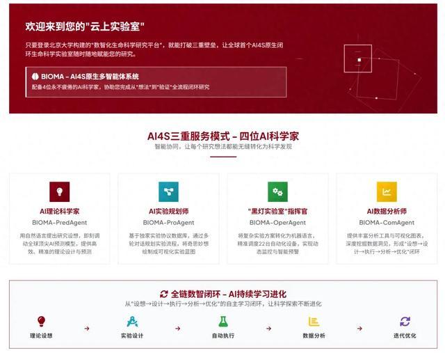 针对生科研发领域长期存在的效率瓶颈与智能化鸿沟,百度智能云携手北大深研院打造了科研服务平台“AI4S LAB”。该平台以北京大学深圳研究生院自主开发的AI4S原生多智能体系统BIOMA为核心,依托百度智能云在AI大模型、高性能计算等领域的云原生技术积淀,以及北大在科研场景洞察与实验资源等方面的优势,为科研工作者提供功能需求出发的逆向智能设计、智能创制与表征实验设计与执行、科研数据智能分析与迭代等核心功能,以及突破时间空间的云化服务能力,实现了科研智能化、实验自动化、数据一体化全流程闭环。